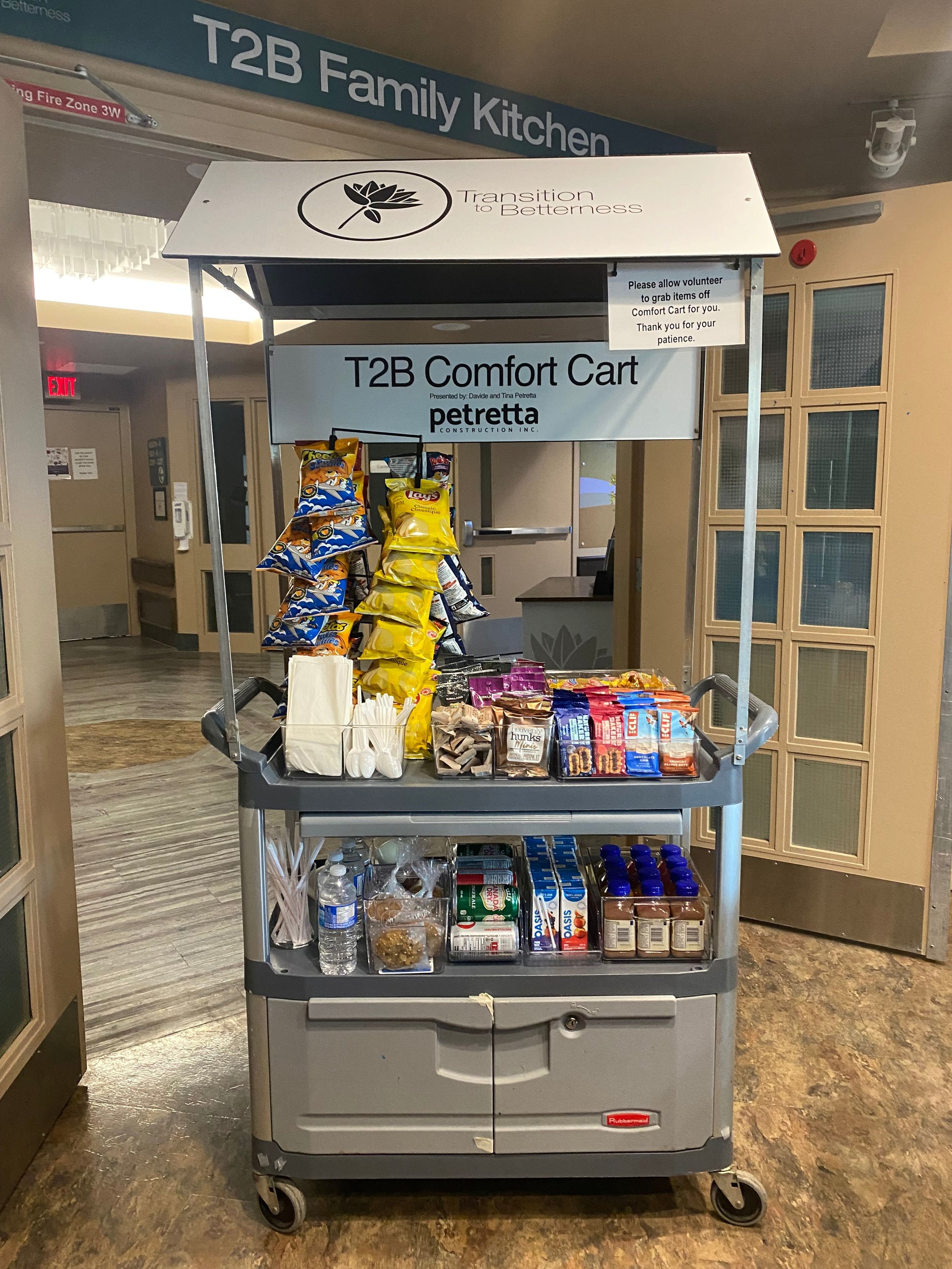 Delivers complimentary snacks, beverages, and human connection to patients and families through volunteer-operated carts throughout the hospital.